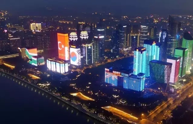 由清华控股成员企业同方股份实施总体控制的杭州钱江新城核心区主题灯光秀在G20峰会前正式亮相。该项目在我国首次实现了无线4G对广域楼宇的同步联动控制,将35栋建筑的近70万盏LED灯组成一幅巨幕,并首次在错落有致、穿插交错、多层叠加的建筑组团的建筑立面上,完成动画制作及播放,动画演绎在建筑群立面上跑动自如、连接有序、环绕飘逸,描绘出一幅“钱江夜曲”新画卷,喜迎G20峰会的八方宾客。