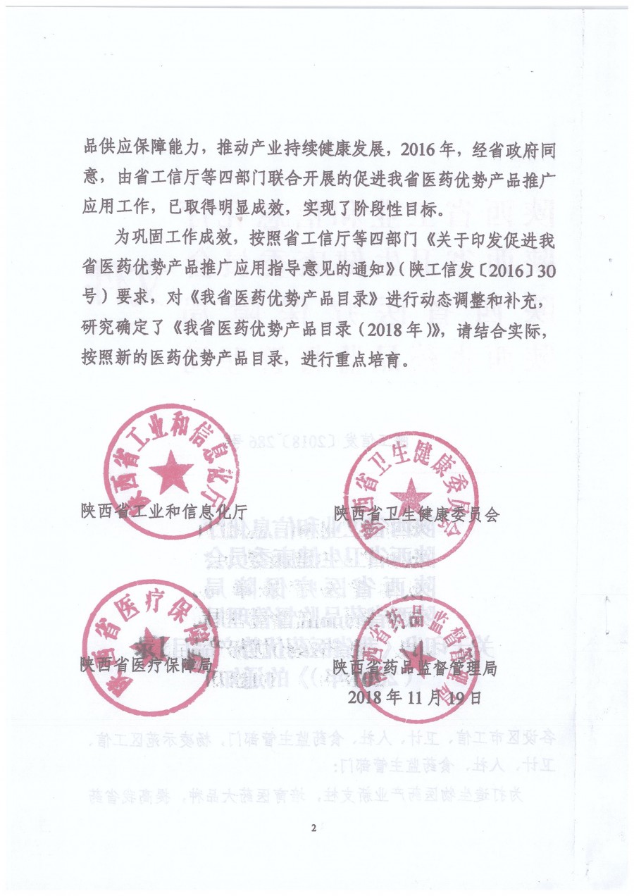 根据陕西省工业和信息化厅、陕西省卫生健康委员会、陕西省医疗保障局、陕西省药品监督管理局《关于印发促进陕西省医药优势产品推广应用指导意见的通知》(陕工信发[2016]30号),现对《陕西省医药优势产品目录》进行动态调整和补充,研究确定了《我省医药优势产品目录(2018年)》。 拼搏网页版登录入口产品《舒肝快胃丸》成功入选,将作为医药优势产品,进行重点培养。